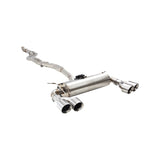 Introducing the highly anticipated Xforce Varex cat back exhaust system for the BMW F87 M2. Engineered for performance and precision, this exhaust system takes your driving experience to the next level. Designed to bolt directly to the factory downpipe, the system seamlessly splits into a twin 2.5" center section, ensuring excellent ground clearance. The flow then collects into a single 3" pipe, entering the Varex muffler. Experience a deep and aggressive exhaust note that will turn heads wherever you go. Crafted with meticulous attention to detail, the Xforce Varex cat back exhaust system is built to last, providing maximum durability and performance. The quad 4" tip outlet adds a touch of style to your BMW F87 M2, making a bold statement. Get ready to unleash the true potential of your BMW F87 M2 with the Xforce Varex cat back exhaust system. Elevate your driving experience and enjoy the power, performance, and the commanding sound that this system delivers. Upgrade today and make a statement on the road. 304 Stainless steel Clamps to factory down pipe Slits to twin 2.5" Collects to single 3" Varex rear muffler with dual outlet Quad 4" tips