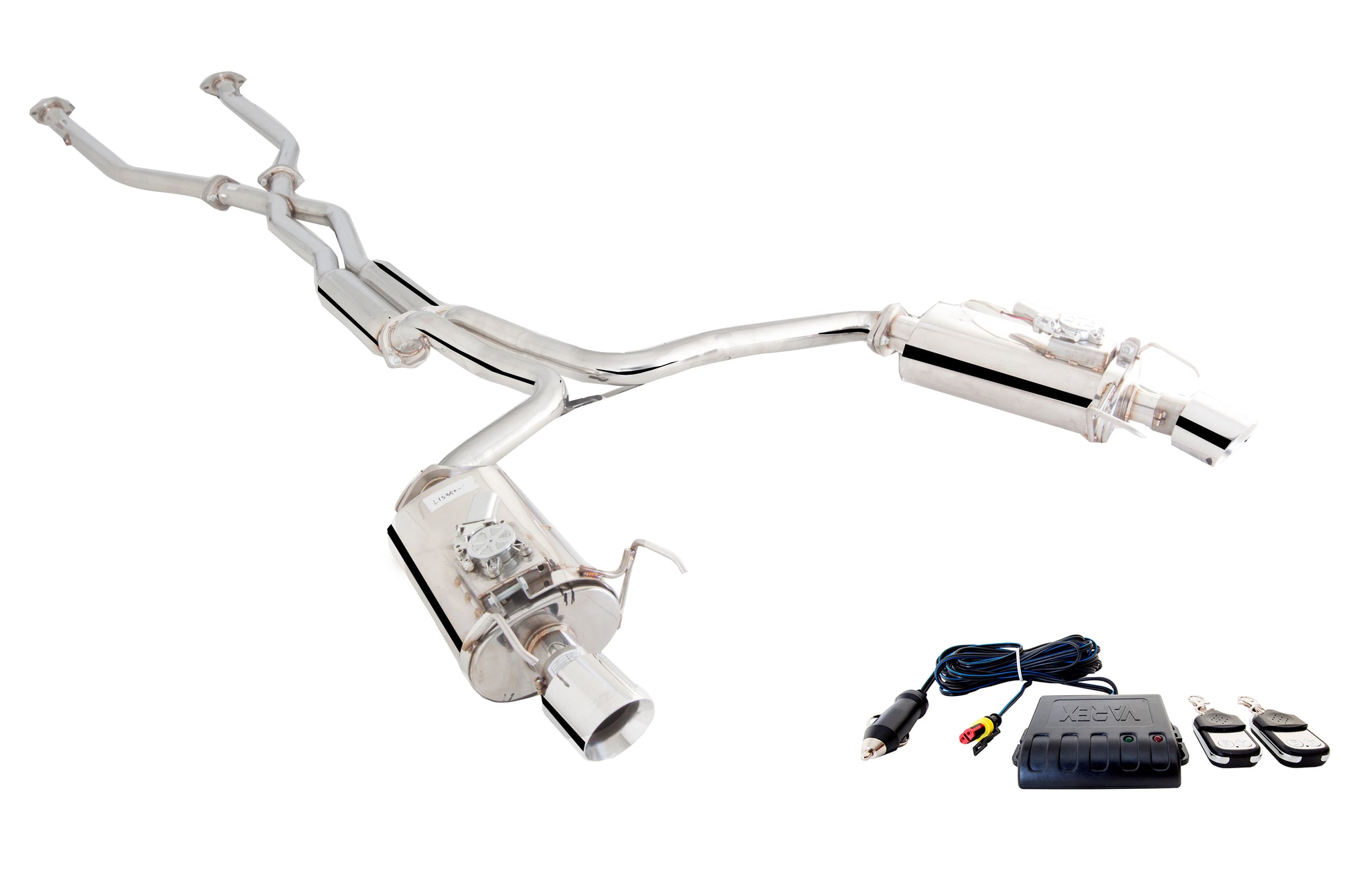 - Twin 2.5" system Polished stainless steel Centre resonators Varex rear mufflers 3.5" polished tips RWD Only