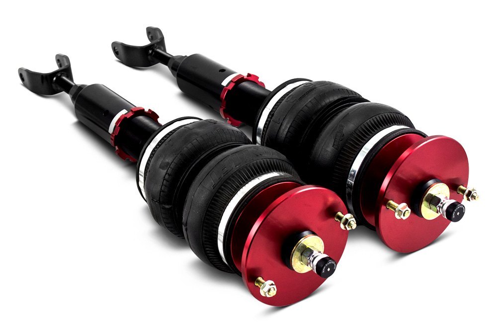 If you want that ground-hugging look for your show car, or want to cut lap times at the track, nothing beats an air suspension system. Your original equipment springs or struts are replaced with infinitely adjustable air springs or struts. If you have a custom cruiser you can slam it without the harsh ride typical of lowered coil springs, and easily raise it up with the touch of a button to clear speed bumps and steep driveways. For performance cars we have struts that come with adjustable progressive rate air springs, and adjustable damping, for ride height adjustment, resistance to body roll and dive, precise suspension tuning, and responsiveness that rivals the best coilover systems, yet provides a comfortable highway ride.