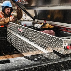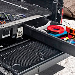 A pickup bed is just a big open box, which is fine for hauling big stuff but not ideal for carrying a lot of small items. Whatever the size of your cargo, you can get it organized and secured with our tool boxes and bed organizers. Choose from tool boxes in a range of capacities and styles including crossover, side mount, chests, and wheel well boxes. Most are constructed from rugged diamond pattern aluminum, have gaskets to keep out moisture and dust, with sturdy locks to prevent theft. We offer simple dividers like cargo bars and gates for separating large cargo items, storage pockets and trays for gear you carry regularly, and a large selection of drawer units for organizing and carrying small items. Most drawers have dividers and compartments for further categorization.