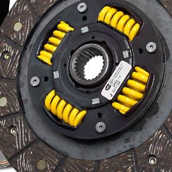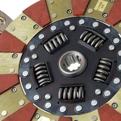 A crucial factor in choosing a clutch disc is clutch face material. Clutch disc friction material is constantly under a state of wear. In our store you can find several choices of clutch discs based on the clutch facing material - with organic and metallic facing. By using a material with higher coefficient of friction, manufacturers can influence how well the facing grabs the flywheel and pressure plate. Organic compounds are usually less aggressive and provide easier engagement. Metallic compounds have better temperature capabilities and offer stronger holding power.