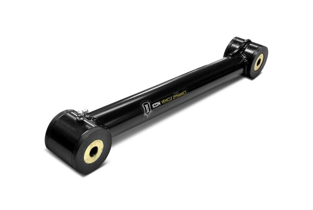 Many vehicles like muscle cars with live rear axles have stamped steel U-section rear control arms that can bend and distort when a lot of horsepower is put to a set of big, sticky tires. We have thick DOM tubular steel and box section rear control arms that are much stronger, so the axle stays in its designed position and doesn't deflect. You get traction and all that power gets to the ground. These control arms usually come with firm, durable polyurethane or Delrin bushings installed. Some applications feature spherical bearings instead of bushings to eliminate deflection and provide less friction and greater range of motion. Many of our rear control arms and links are adjustable, so critical dimensions like pinion angle and rear wheel alignment can be dialed in.