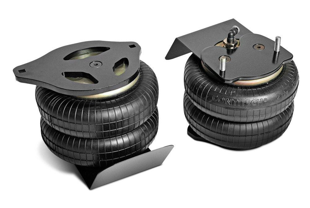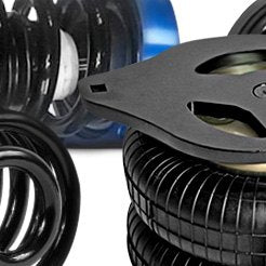 But while coil spring conversions are right for many vehicle owners, for those that routinely carry heavy loads or tow large trailers, an air suspension's load-leveling capabilities are invaluable. If you'd like to enjoy these benefits, we have coil-to-air conversion kits that replace your rear coil springs with air springs and include a compressor, air lines, height sensors and everything needed for installation. We also have load support/leveling kits with air springs that work with and fit inside rear coil springs as well as air helper springs for leaf spring vehicles that install between the frame and axle. And if you want to level the front of a truck that's drooping because of a plow or other accessories we have air spring/shock absorber assemblies for front suspensions.