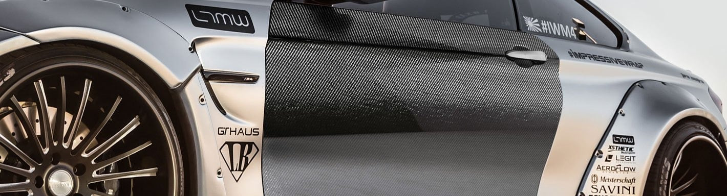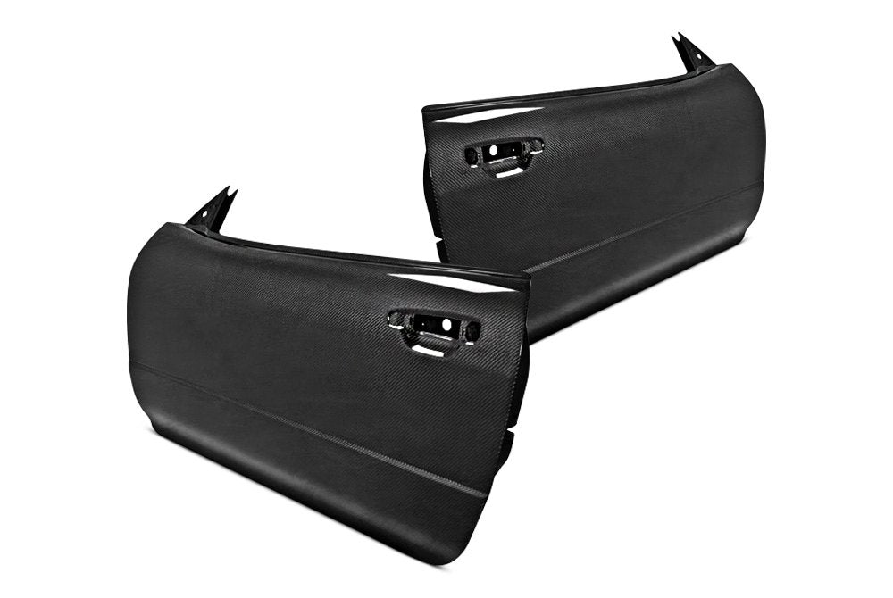 Although they're made for off-road/racing use, our custom doors are faithful reproductions of the heavy OE panels crafted in carbon fiber and fiberglass that is much lighter yet exhibits exceptional stiffness for high strength. And although these products will help your vehicle shed weight, you don't have to sacrifice any style in the process. To the contrary, each carbon fiber panel has a glossy finish that allows that unmistakable track-ready carbon fiber pattern to show through, and fiberglass panels come ready for prep and paint.