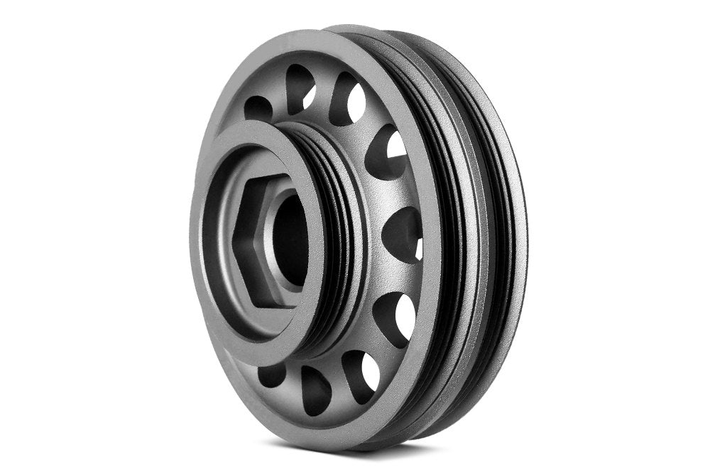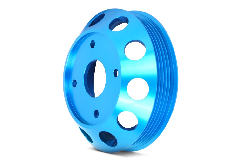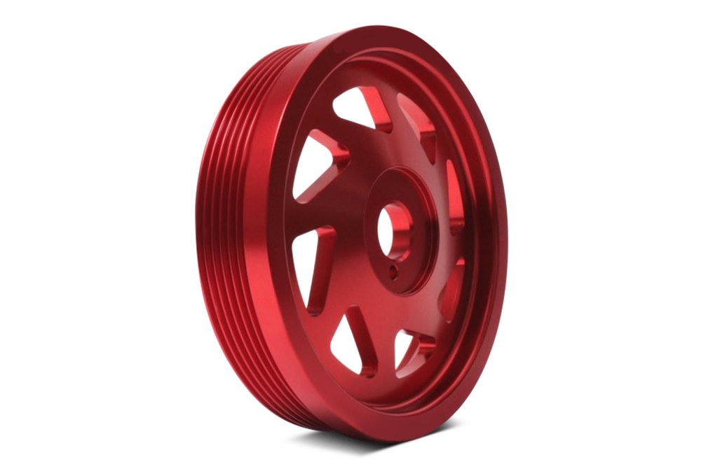 You can gain horsepower by reducing the weight of your pulleys and by changing their diameter. We offer aluminum pulleys that are much lighter than the original equipment pulleys, without any reduction in strength. These pulleys are direct replacements and require no modifications for installation. Their light weight not only results in a horsepower increase, but the reduced rotational mass also improves throttle response.