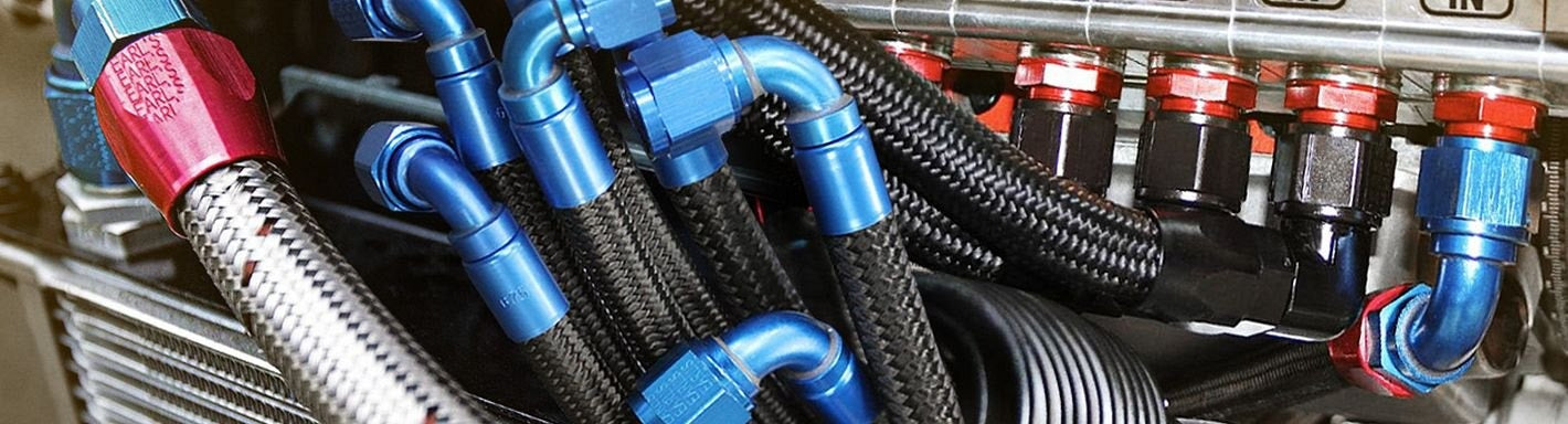 But although you can increase fuel flow and your safety factor with performance fuel lines, fittings, and hoses, we know that often this is an upgrade that's done mainly for appearance. Bright stainless steel braided hose connected with colorful anodized aluminum AN fittings are as much a part of custom car building and hot-rodding as chrome and fat tires. But regardless of what you want to achieve with your fuel system, looks, performance, or both, we have the components for the job. Our selection of flexible hose ranges from traditional braided steel Chlorinated Polyethylene (CPE) synthetic rubber to the latest braided Teflon hose, in a wide range of inside and outside diameters.