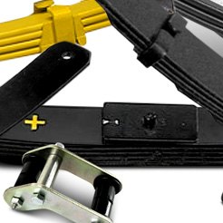 Leaf spring suspension is old technology, and leafs have been supplanted by modern multi-link systems with coil springs on most late-model cars. But they were original equipment on many performance cars in the past, and some fine handling sports cars still use transverse leaf springs made of advanced composite material. And of course, with their excellent load carrying capabilities they remain the springs of choice for truck rear suspension. Whether you want to lift or lower your ride, or improve its performance or load capacity, we have the performance leaf springs and related components for the job.