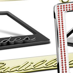 Every vehicle has a rear license plate, and 31 states and Washington D.C. require a front plate. Regardless of how many you're required to display, don't let them hang out naked or encased in drab black or a dealer frame. Surround your plate with your car's logo or symbols, border it with exclusive embedded crystals that create a glittering rainbow of color, or encase it in a chrome chain or custom billet aluminum.