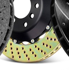 While the materials used for brake rotor construction are proprietary formulations unique to the manufacturer, in general they are all designed to provide consistent braking performance at high temperatures. Cast iron rotors may have a high carbon or silicon content for added strength and resistance to distortion at high temperatures that could otherwise cause shudder, vibration and fade. Carbon ceramic rotors were originally developed for racing. They're manufactured from a mixture of fibers, resins and powders that combine to create lightweight components that are also resistant to deformation at extreme temperatures. But in addition to better materials, performance brake rotors also have design features that allow them to run cooler and provide shorter stopping distances.