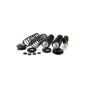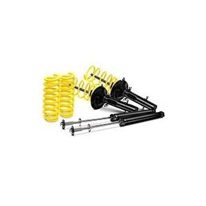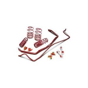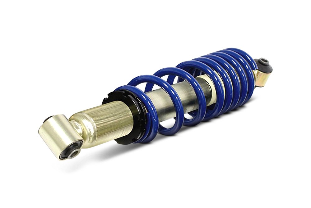 Car makers have to be conservative with ride height, even on sports models, to satisfy bumper height and other regulations. You are under no such constraints, so to get that aggressive stance, lose the ugly gap between the fenders and tires, and improve your ride's handling, we offer lowering kits. These kits contain progressive springs that will lower the ride height, but still provide a comfortable, albeit firm ride. Comprehensive kits contain firmer shocks or struts, or coilovers, and larger sway bars as well. Besides improving looks and handling, lowering your car can also reduce drag and increase fuel economy.