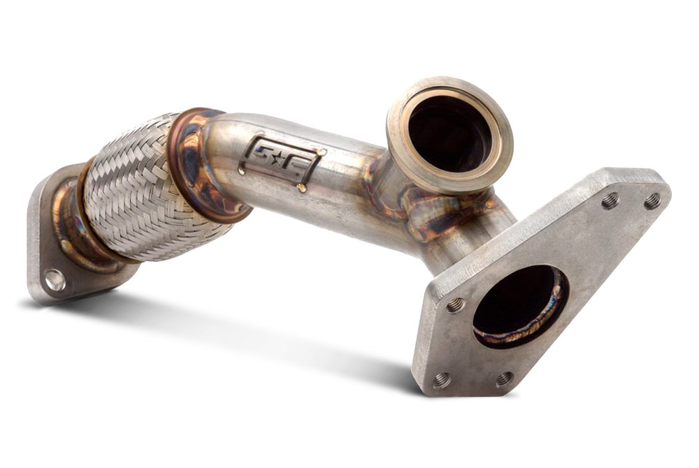 Top-notch turbocharger uppipes provided on our virtual shelves are also the perfect way to get the most out of your turbocharger. By replacing your restrictive uppipe with one of our uppipes that feature a larger diameter, you'll get increased spool and reduced EGTs, which contributes to extra power. The uppipes are fabricated out of high-grade stainless steel to prevent any cracks and leaks which are common for OEM uppipes. Investing in an aftermarket turbocharger downpipe can also help unleash the hidden potential of your turbocharged vehicle. This pipe connects the catalytic converter with the turbo outlet and channels the exhaust from the turbocharger into the exhaust system. Aftermarket downpipes, usually made of stainless steel, are wider than factory pipes to increase the exhaust flow rate and reduce turbo lag. This makes your turbocharger more potent and allows you to add up to 20 horsepower. Wider downpipes also reduce engine compartment temperature, thus increasing air density and boosting power.