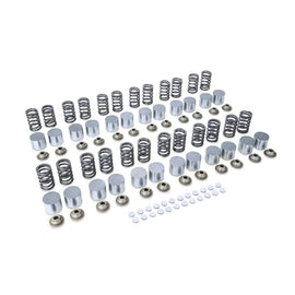 Some cylinder heads can be fitted with larger valves, but they're most often acquired as part of a complete set of performance cylinder heads. Larger valves allow more flow in and out of the combustion chamber for more power, but they can be heavier and high RPM use requires stronger valve springs to prevent valve float. High tensile strength dual or beehive springs with lightweight titanium retainers are state-of-the-art. Finally, there are some performance valvetrain components that have no OE counterpart. For example, stud girdles support and strengthen individual rocker stud valvetrains to prevent deflection.